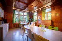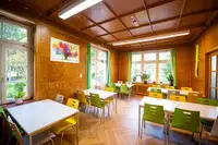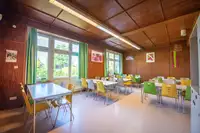 Gemeinschaftsraum (20 m²), Discoraum, Freizeitraum. Beamer, CD- und DVD- Player, Flipchart, Leinwand, Overheadprojektor, Tafel, WLAN,TV, Klavier, Digitalpiano. Tischkicker, Gesellschaftsspiele, Tischtennisplatten (innen und außen), Basketballkorb, Beachvolleyballfeld, Kunstrasenplatz (20 m x 30 m), Lagerfeuerstelle, Spielwiese und Schaukel.Freizeit