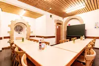Werkraum, Tischtennisraum, Disco, Klavier, E-Piano, Film/Dia/Overheadprojektor, Fotokopiergerät, Fernsehgerät, Videorecorder, Videokamera, Stereoanlage, Tischtennisplatte, Fußballkicker, 25 AutoparkplätzeFreizeit