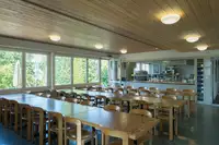 Großer Speise- und Aufenthaltsraum, 1 Aufenthalts- und Schulraum (Seminarinfrastruktur vorhanden), Fernseh- / Leseraum mit Bibliothek, Kinderspielraum, Terrassensitzplatz, Diverse Gesellschaftsspiele, Velokeller, Wickeltisch, Babybetten, Internetcorner, WiFi (kostenlos).Freizeit