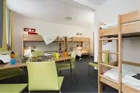 164 Betten in 44 Ein- bis Achtbettzimmern, alle mit Dusche/WC, 15 Betreuer- und 44 Familienzimmer, 5 Zimmer für Rollstuhlfahrer, 5 Tagesräume, Bistro, Discoraum, Sauna mit Ruheraum, Kellerbar mit Theke und Musikanlage. Gut ausgestattete Proberäume für Musikgruppen und Chöre.Freizeit