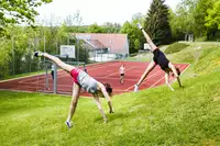 Allwettersportplatz, Ballspiele, Tischtennisplatte, Fußballkicker, Kinderspielplatz, überdachte Lagerfeuerstelle, Grillplatz, Disco, Sonnenterrasse, Freiluftschach, Spiel- und Liegewiese, viele teilweise auch anspruchsvolle Rad- und Wanderwege, Fahrradverleih am Haus (30 Mountainbikes), Fahrradwerkstatt, Einstellgarage für Fahrräder,Bemerkungen