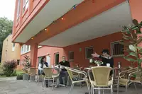 Die Mitarbeiter sind freundlich und offen. Den Gästen sehr entgegenkommend ist das unentgeltliche Wasserangebot, gerade an sehr heißen Tagen. Der Speiseraum und die Sanitärräume waren sehr sauber. Die Ausstattung ist nicht optimal, wegen der von den Zimmern teilweise weit entfernt liegenden Sanitärräume. Und der Teppichboden, mit dem Flure und Zimmer ausgestattet sind, schluckt sicher gut den Lärm, ist aber für die Reinigung etwas schwierig. Unter einem der Betten in unserem Zimmer lagen noch ausgeschüttete Gummibärchen, die offensichtlich der Staubsauger nicht fassen konnte.