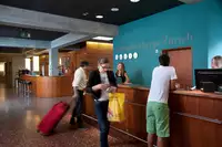 Insgesamt 280 Betten. Duschen/WC teils auf der Etage. Grosse Aufenthaltshalle mit Flat Screen TV, Billard, Tischfussball, Snackbar. 1 grosser Saal (total 200 Plätze bei Konzertbestuhlung), 3 Sitzungszimmer (2 x 50 Plätze bei Konzertbestuhlung, 1 x 20 Plätze am ovalen Tisch). Vielfältige Seminarausrüstung (Beamer, Lautsprecheranlage, CD/DVD, usw.). Innenhof mit langem Granittisch, Bar, Restaurant, WiFi (kostenlos).Bemerkungen