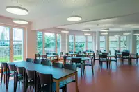 Unterteilbarer Seminarraum mit Leinwand, Wandtafel und TV, Ping-Pong Tisch im Keller, Gartensitzplatz und Grill, abschliessbarer, gedeckter Veloraum, Kiosk an der Rezeption, Waschküche, Internetcorner, WiFi (kostenlos).Freizeit
