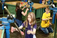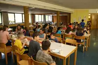 Neben Gruppenräumen mit Medienausstattung und einer Holzwerkstatt mit 30 Arbeitsplätzen ist ein geräumiger Speisesaal vorhanden.