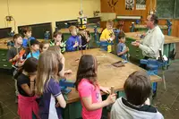 Wir hatten wieder eine sehr schöne Klassenfahrt mit den 4. Klassen. Die Kinder haben die "weltbeste Zeit" erlebt, viel über den Wald gelernt und unter der hochqualifizierten und engagierten pädagogischen Führung des JWH Obereimer einen handlungsorientierten Bezug zum Thema Wald erhalten. Sie waren nur mit Mühe ins Haus zu bekommen und konnten dementsprechend in den übrigens sehr sauberen Zimmern (100% und nicht etwa 99%) gut schlafen. Die großzügigen Möglichkeiten zum Kickern und Tischtennisspielen im Haus wurden gern genutzt.