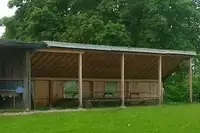 • Überdachter Anbau: Küche "2" mit Gasherd (4-Flammig), große Anrichte, mehrere Kühlschränke. Gut geeignet zum Unterstellen von Material bei Auf- und Abbau. Erste-Hilfe-Koffer.