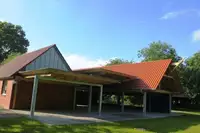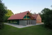 Auf dem Gelände befinden sich vier Außenduschen. Es sind zwei Damentoiletten und eine Herrentoilette sowie eine Sammeldusche mit drei Duschköpfen und zwei Duschkabinen im Gebäude vorhanden. Die Küche ist ausgestattet mit einem Haushaltsherd und einem Kühlschrank. Auf dem Gelände befindet sich ein Grillpavillon, wie auch ein teilweise überdachter und windgeschützer Außenbereich.Es besteht die Möglichkeit, einen Toilettenwagen, Küchenwaagen u. s. w. auf eigene Rechnung aufzustellen.
