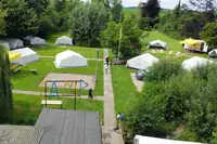 Die Zeltplätze entsprechen der Standardgröße für Gruppenzelte (Lanco 404G 4,4 x 4,0 Meter), eine freie Stellung auf den Rasenflächen ist ebenfalls möglich. Großgruppenzelte können nach Rücksprache gegen Gebühr entliehen werden.