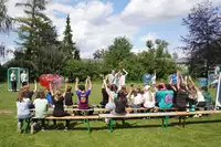Das großzügige, grüne Außengelände verfügt über einen Fußballplatz mit neuen Fußballtoren, ein Volleyballfeld, einen Bachlauf zum Spielen, Tischtennisplatte, Basketballkorb und vielfältige Grünflächen für Gruppenspiele. Weiterhin kann der große Lagerfeuerplatz für Stockbrot und ein Pizzaofen genutzt werden, Holz hierzu kann erworben werden. Nicht weit zu Fuß liegt ein kleines Wäldchen, welches sich bestens für Nachtwanderungen eignet.Ausflugsziele