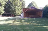 4/7 Blick von der Zeltwiese auf die beiden Unterstände mit Sitzgelegenheiten