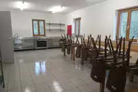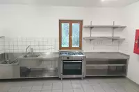 Allzweckraum, behindertengerechte Toilette und Dusche, Küche mit Haushaltsherd, Kühlschränke, Backofen, Pizzaofen und Gefrierschrank.Freizeit