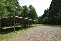 Sanitär: WC und offene Waschanlage, Wasser, 2 Feuerstellen, Parkplatz, Sport- und Spielflächen, offene Hütte als Aufenthaltsgebäude. Die Gebühr von 3,50 € bezieht sich pro Nutzungstag. An- und Abreise werden als jeweils als voller Tag berechnet.