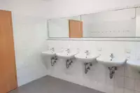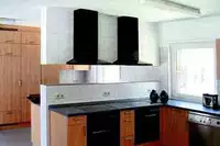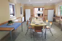Komfortable Küche, geräumiger AufenthaltsraumFür die Betreuung steht ein separater Schlafraum (Einzelbett, 90 x 200 cm) mit Nasszelle im Betriebsgebäude zur Verfügung. Zwei Holzdoppelhäuser ergänzen das Angebot und stellen vor allem bei schlechter Witterung eine alternative Übernachtungsmöglichkeit dar.