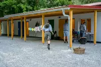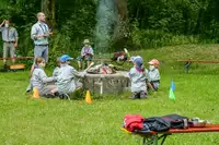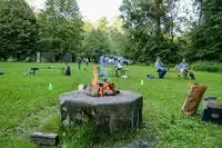 Unser Zeltplatz liegt mitten im Wald, grüner geht es nicht! Einkaufsmöglichkeiten sind in der Nähe vorhanden.Zwei aneinandergrenzende Zeltplätze, durch Baumwuchs optisch getrennt, fließend Kalt-/Warmwasser, mehrere Lagerfeuerstellen, Moderne Sanitär- und WC-Anlage, Komplett eingerichtete Küche mir Gastrospüle, großem Kühlschrank, Gefrierschrank, Gasanschlüsse im Haus und im Aussenbereich, Großes Vordach mit Platz für 100 Personen bei schlechtem Wetter. Biertischgarnituren vorhanden.