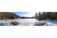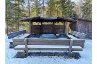 Tischtennisraum, Tischkickerraum, ausreichend Autoparkplätze. Eine Spielwiese mit Toren direkt vor dem Freizeithaus mit viel Platz zum Spielen ist das Kernstück. Ein Holzpavillon mit Sitzmöglichkeiten, eine Grillstelle mit Bänken und Tischen, und ein Lagerfeuerplatz ergänzen die Anlage. Dazu kommt eine überdachte Tischtennisplatte, eine Nestschaukel, eine Vier-Turm-Spielanlage, ein Basketballfeld und viele Spielwiesen.