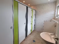 Platz für 100 Personen, fließend Wasser, Strom, Sanitäranlagen, Kochstelle, Dusche, AufenthaltsraumIn unserem nagelneuen Sanitärgebäude stehen WC`s zur Verfügung. Duschen sowie ein Spül- und Wäschebereich sind vorhanden.
