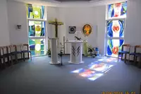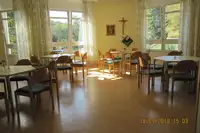 Cafeteria, Meditationsraum, Lesezimmer, Hauskapelle, Internet/WLAN, Flip-Chart, Fotokopierer, TV/Video/DVD, Beamer, Klavier, Tischtennisplatte, Fußballkicker, Trampolin, Gesellschaftsspiele, 30 Autoparkplätze, Laube, Baumelbänke, Hollywood-Schaukel, Grillmöglichkeit.Freizeit