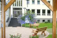 Prima geeignet für Schulklassen, auch für jüngere Schüler, sehr freundliche Aufnahme , schöne Zimmer und toller garten, gutes Essen, gute Anbindung an öffentliche Verkehrsmittel