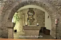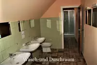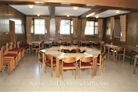 Großer Gruppen- bzw. Speiseraum im EG, kompl. eingerichtete Küche mit Spülmaschine, Kühlschränken und Kaffeemaschinen, 2 Schlafräume mit 4 bzw. 5 Betten, 1 Schlafraum mit 16 Betten (Stockbetten), 2 Waschräume mit Waschbecken, Bidet und Dusche, Toiletten im EG und im Schlafbereich im OG, großer Flur im EG, Kapelle (ehemaliger Stall) mit Pfeifenorgel für Gottesdienste und Meditation, Nebengebäude mit Tischtennisplatte und Sitzgruppe, abgeschlossener Garten, Gartenmöbel und Biertischgarnituren sind vorhanden, Spiel- u. Zeltwiese mit Feuerstelle, hauseigener Parkplatz