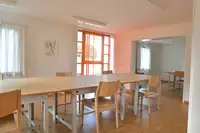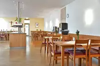 Gäste-PC, W-Lan Empfang, Beamer in den Seminarräumen, Kapelle, Fernsehraum mit Bücherregal, Werkraum, Lehrküche, Klavier, Tischtennis, Kickerkasten, AutoparkplätzeFreizeit