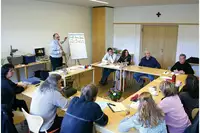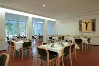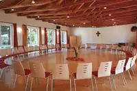 8 Seminarräume, Werkraum, Tischtennisraum, Kapelle, Videobeamer, Dokumentenkamera, Overheadprojektor, DVD, WLAN, Fotokopiergerät, TV, Videokamera (DVD), Ballspiele, Tischtennisplatte, Fußballkicker, Gesellschaftsspiele, Flügel, 2 Klaviere, Digitalpiano, Orgel, 100 AutoparkplätzeFreizeit