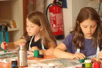 In der Hobbybude kannst du dich bei der Textilmalerei, dem Kerzengißen oder auch Naturbasteln austiben.