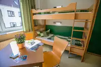 * 4 Gästehäuser (alle Zimmer mit DU/WC) mit je 60 Betten (barrierefrei und teilweise rollstuhlgerecht)* 1 barrierefreies Gästehaus (Zimmer mit DU/WC) für 37 Personen