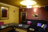 Bar: Kühlschränke, Tresen, Barhocker, Sitzecken, Musikanlage