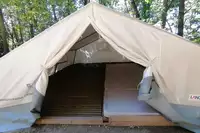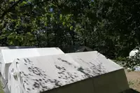 3/12 Unsere Zelte stehen größtenteils auf Balkenrahmen. Laufbereich und Schlafbereich (Matratzen) sind etwas erhöht.