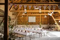 Unser authentischer Bauernhof ist ein großzügiger Veranstaltungsort und bietet ein besonderes Ambiente für euren Tag.Unsere restaurierte Scheune bietet auf 240m² ausreichend Platz für eine unvergessliche Hochzeit ohne besorgten Blick auf den Wetterdienst. Eine eigene Bühne, dezente und geschmackvolle Einrichtung und Beleuchtung, sowie ein authentisches Flair suchen ihresgleichen.