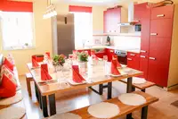 Sie suchen eine XXL Ferienwohnung mit gemütlichem Charme für einen gemeinsamen Urlaub oder auch einen Kurztrip? Dann besuchen Sie unsere charmante XXL Ferienwohnung "Blumenwiese" im Hayinger-Altstädtchen.Diese bietet Ihnen genügend Platz für insgesamt 14 Personen. Die Küche mit gemütlichem Essbereich bietet Platz für gemeinsame Stunden. Gerne können Sie sich bei uns auch kulinarisch verwöhnen lassen mit Frühstück und/oder Abendessen, als Catering direkt in die Ferienwohnung.