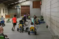 Speedbikefahren, Trampolinspringen und olifu-racer fahren, Släklein und Schaukeln testen