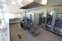 Es gibt eine gut eingerichtete Gewerbeküche mit: