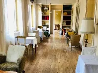 ∼ 3 Speiseräume und Bibliothek, mit gemütlichen Kachel- und Kaminöfen