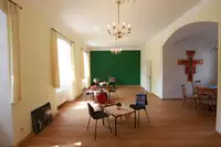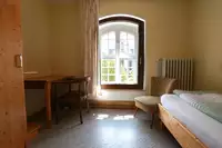 Wir sind ein Haus, in dem klösterliche Schlichtheit gleichsam Programm ist. Die Unterbringung erfolgt in schlichten, einfach eingerichteten Einzel-, Doppel- und Mehrbettzimmer mit Etagendusche/WC. Einige wenige Zimmer sind mit eigenem Bad/WC ausgestattet.Für Gruppen- und Seminararbeit stehen drei frisch renovierte, geschmackvoll eingerichtete Tagungsräume bereit. Ein Raum ist mit moderner Tagungstechnik ausgestattet.