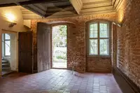 Schulhaus: Im Schulhaus neben dem Rentmeisterhaus stehen auf zwei Etagen drei Doppel- und sechs Einzelzimmer mit eigenen Bädern sowie ein für Gruppenveranstaltungen geeigneter Giebelsaal zur Verfügung. Das barrierefreie Schulhaus samt Giebelsaal ist dank Rampe am Eingang, einem Aufzug und Duschen mit ebenerdigem Einstieg für Menschen mit Einschränkungen bestens geeignet.