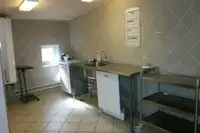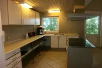 Einfache Küche mit E-Herden, Kühlschrank, Gefrierschrank, Spülmaschine, 2 Kaffeemaschinen...