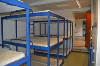 Die Zimmer sind mit Etagenbetten und teilweise Schränken ausgestattet.