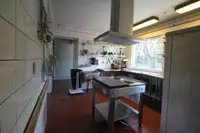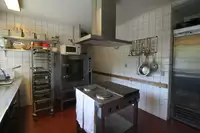 Selbstversorgerküche mit E-Herd mit 4 Platten, Tiefkühltruhe, 2 großen Kühlschränken, Friteuse, Kaffeemaschine, Schneidemaschine, Rührmaschine, Kontaktgrill. Spülraum mit einer prof. Spülmaschine und Waschbecken. Ein zusätzlicher Depotraum, eine Waschmaschine und ein Trockner sind ebenfalls vorhanden. Ausreichend Töpfe, Pfannen, Besteck und Geschirr für 60 Personen sind vorhanden.