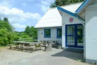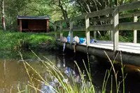 Das Gruppenhaus liegt auf einem landschaftlich hügeligen Gelände am Rande eines Waldgebietes. Auf dem Grundstück befindet sich ein kleiner See, der von einem kleinen Bach durchströmt wird und der sehr kinderfreundlich ist da er nur 70 cm tief ist.