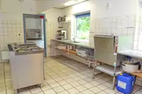 Gut eingerichtete Mischküche mit unter anderem einem Service und Besteck für 80 Personen.