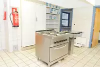 Es gibt eine gut eingerichtete SV-Küche mit: