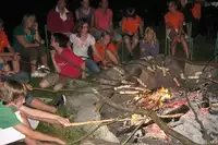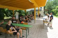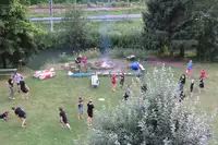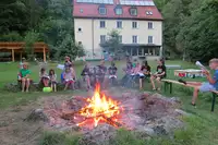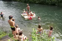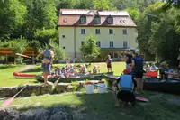 Freizeit:Tischtennisplatte, Kicker, Volleyballnetz, Fußballtore, Schaukel, Grill, Feuerstelle, Baden im Fluss