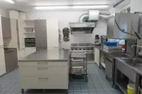 vollausgestattet mit Elektroherd mit Backröhre (Ober- und Unterhitze), Gewerbespülmaschine, Mikrowelle, 3 Kühlschränken, Gefrierschrank, allen notwendigen Kochutensilien, Geschirr, Besteck