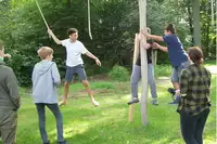 Spielwiese, Kinderspielplatz, Lagerfeuer, Grill, Volleyball-, Fußball-, Minigolf, Wandern, Radfahren, Niedrigseil- und HochseilgartenAusflugsziele