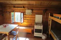 Blockhütte: 10 Betten, 1 Wohn/Schlaf/Kochraum, Gaslicht, Plumpsklo