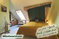 3/6 Unseren Zimmer sind jeweils Literaturthemen zugeordnet. In diesem Beispielbild sehen wir das Märchenzimmer, in dem es sich wunderbar schlafen, aber auch märchenhaft träumen lässt.