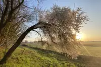 5/6 Im Frühling umschwärmen Bienen unsere vielen Obstbäume, die mit den aufgestellten Bänken und Stühlen zum Verweilen einladen.
