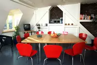 Die Unterkunft im zweiten Stock hat den Charakter einer großen und gemütlichen Wohnung. Die Küche ist gut ausgestattet. Man kann das Kulturangebot im Haus nutzen, aber auch gut mit der Gruppe für sich sein. Die Lage ist super, die Buchung unkompliziert und der Empfang freundlich! Wir waren sehr zufrieden und kommen gerne wieder